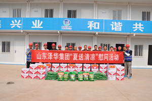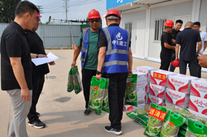 炎炎夏日 驕陽似火,奮戰(zhàn)在項目現(xiàn)場的一線職工迎來今夏“烤”驗,為切實把公司的關(guān)心關(guān)懷關(guān)愛送到一線、送進基層,6月11日,集團公司開展“夏送清涼”活動,集團工會主席徐加東,集團副總經(jīng)理、中房建工經(jīng)理彭煥利,集團副總經(jīng)理、中房建工黨支部書記馮傳波,中房建工副經(jīng)理張曉東、趙飛,中房建工相關(guān)科室以及各施工項目部參加慰問活動。