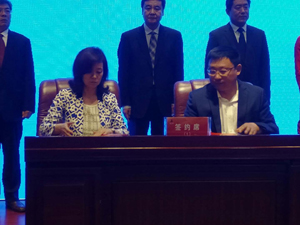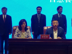 王成喜同志代表澤華集團與北京易斯威特生物科技有限公司董事長顧子易女士在“2019中國?新泰‘雙招雙引’重點項目簽約儀式”上就雙方合作項目“新泰易斯威特檢測生物制劑項目”進行了簽約。(牛永超)