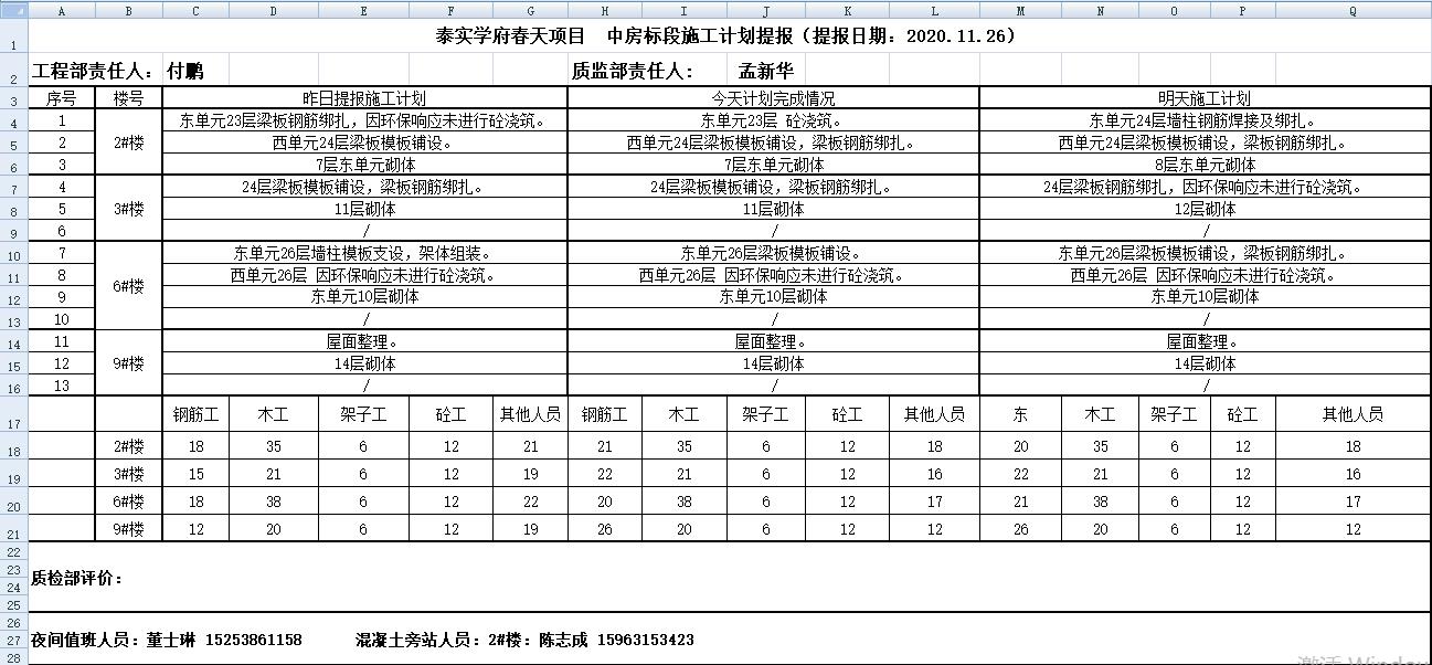 泰安學府春天桃李園工程項目于2019年12月20日開工,計劃竣工日期為2021年9月竣工,截至目前2020年11月27日2#樓主體施工至24層砌體8層;3#樓主體施工至24層砌體12層;6#樓主體施工至26層砌體10層;9#樓屋面施工砌體15層;4棟單體周邊車庫按施工計劃施工中;2#公建對基礎進行挖槽施工。中房建工將層層落實、區(qū)域劃分、穩(wěn)步推進、逐步完成,確保項目按計劃工期順利交付。(王帥)