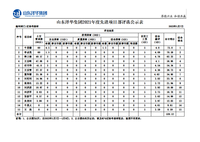 2021年度中房建工各項(xiàng)目部綜合評(píng)選公示