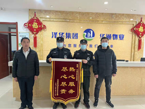 高先生接到孩子后如釋重負(fù),激動(dòng)的對(duì)我們工作人員表示感謝并對(duì)我們?nèi)虩o死角的監(jiān)控系統(tǒng)大力稱贊。高先生于2月13上午將一面印有“盡心盡責(zé),熱心服務(wù)”的錦旗送到物業(yè)工作人員的手中,再次表達(dá)了對(duì)工作人員的感激之情。