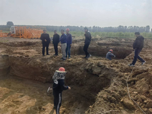 項目施工單位在現(xiàn)場匯報了基坑開挖的基本情況,勘察、設計、監(jiān)理及建設單位現(xiàn)場結合勘察報告和釬探報告察看了基槽和地基情況。