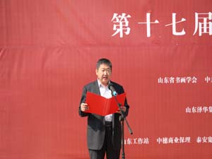 開幕式上,中共新泰市委常委、宣傳部部長周典紅、山東省美術家協(xié)會副主席、泰安市美術家協(xié)會主席孫成剛、山東財政大學藝術學院副院長宋述林、中國美術家協(xié)會理事、山東省文聯(lián)副主席楊楓分別對開幕式進行了致辭,在各位領導、嘉賓的關心支持下,“水墨泰山·第17屆中國畫名家作品展”開幕儀式取得圓滿成功。