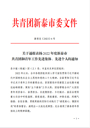 近日,共青團(tuán)新泰市委為表彰先進(jìn),樹立典型,激勵(lì)全市各級(jí)團(tuán)組織、團(tuán)員青年向先進(jìn)學(xué)習(xí),決定對(duì)多個(gè)先進(jìn)集體和個(gè)人進(jìn)行通報(bào)表揚(yáng)。集團(tuán)財(cái)務(wù)部張晶同志被授予“2022年度新泰優(yōu)秀青年工作者”榮譽(yù)稱號(hào)。