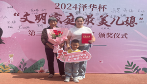 華通物業(yè)公司經(jīng)理徐海為本次評選活動致辭,同時還為本次“最美兒媳”獲獎?wù)哌M行了頒獎。受到表彰的最美兒媳紛紛表示,將繼續(xù)傳承好中國傳統(tǒng)家庭美德,帶動身邊更多的人營造良好家風(fēng)、踐行孝親敬老、弘揚文明新風(fēng)。