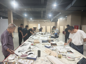 活動開始之前,藝術家們齊聚新泰文化藝術城二樓展廳,進行了藝術交流筆會;筆會結束后,集團紀委書記、工會主席王功隨帶隊,帶領采風團一行來到澤華生態(tài)農場櫻桃種植基地進行參觀。本次參觀的櫻桃基地占地192.6畝,品種以沙王為主,共種植大棚27個。