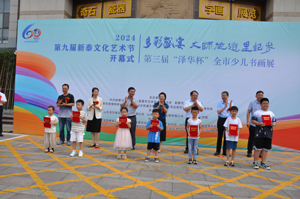 艷陽七月,如火如荼。在舉國歡慶黨的誕辰103周年、喜迎建軍節(jié)之際,令人矚目的2024第九屆新泰文化藝術(shù)節(jié)開幕式暨“多彩盛宴·大師從這里起步”第三屆“澤華杯”少兒書畫展開展儀式,7月23日在新泰文化藝術(shù)城門前廣場(chǎng)舉行了隆重的開幕儀式,此次活動(dòng)旨在展示新泰少兒的藝術(shù)才華,促進(jìn)文化藝術(shù)的傳承與發(fā)展,不僅為少兒提供了一個(gè)展示自我的平臺(tái),也為新泰市的文化建設(shè)增添了一抹亮色。