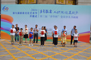 在各級(jí)領(lǐng)導(dǎo)關(guān)心支持下,在廣大參賽同學(xué)、老師和家長朋友的積極參與下,2024第九屆新泰藝術(shù)節(jié)開幕式暨“多彩盛宴·大師從這里起步”第三屆‘澤華杯’全市少兒書畫展開展儀式取得圓滿成功。