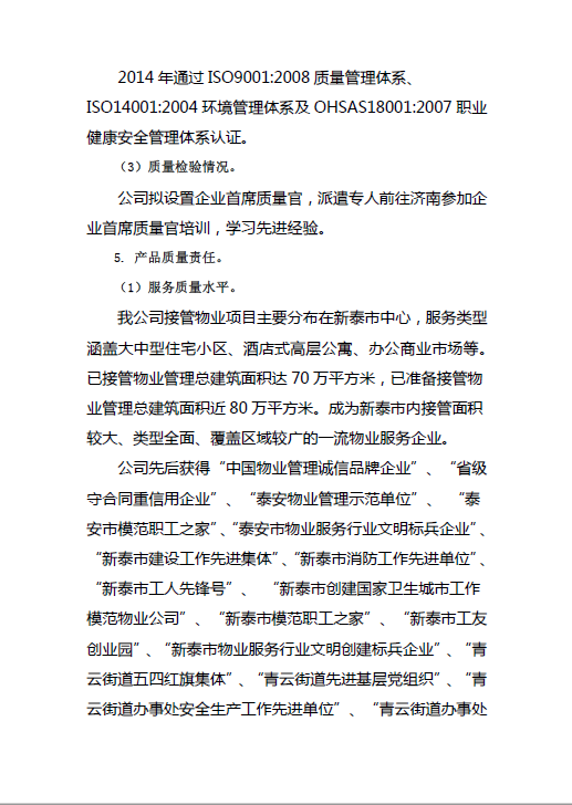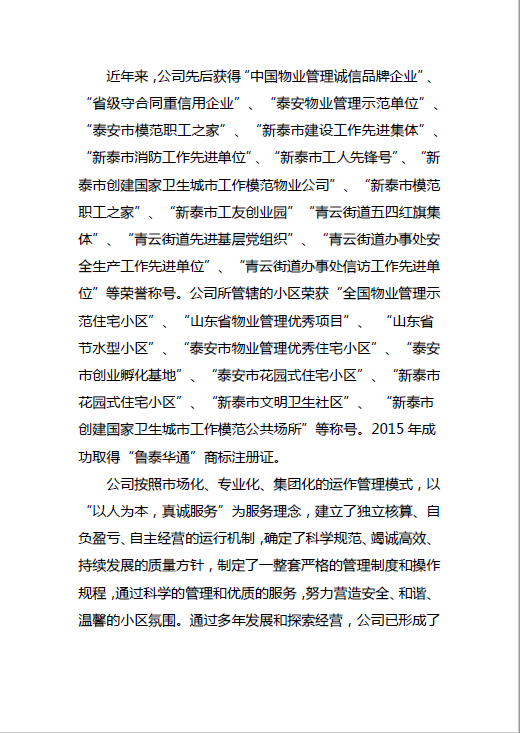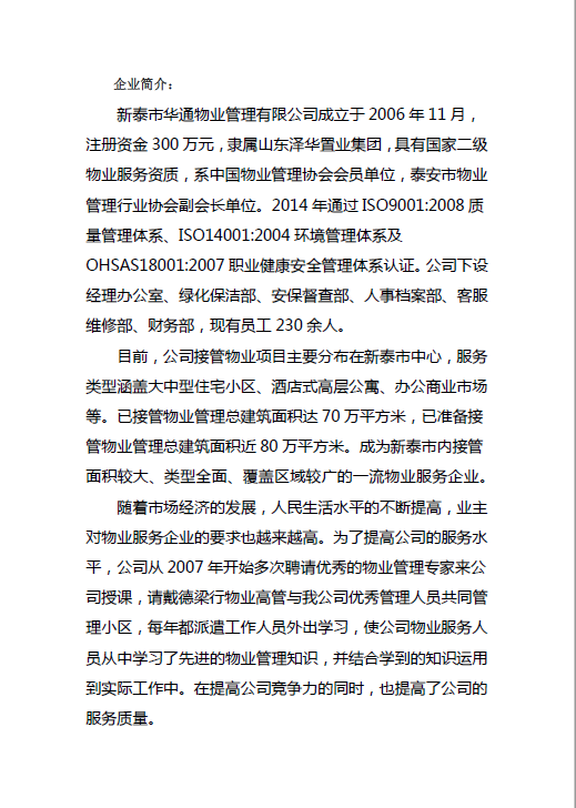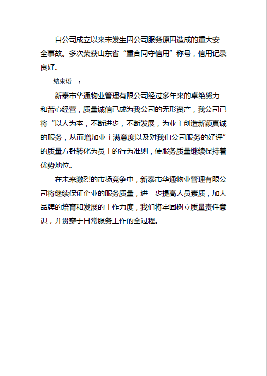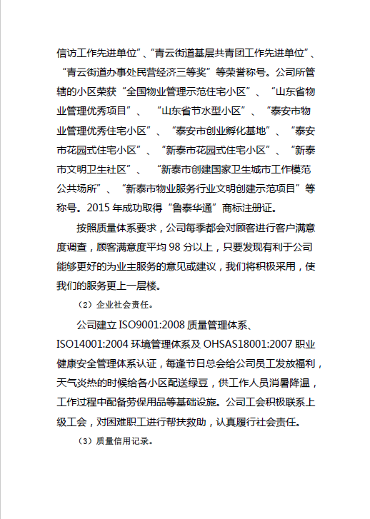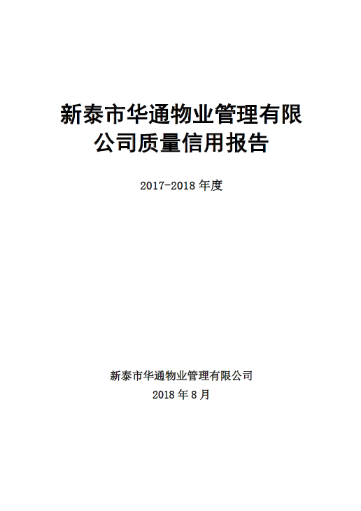 新泰市華通物業(yè)管理有限公司質(zhì)量信用報(bào)告