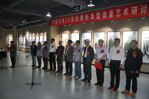9月19日,新泰文化藝術(shù)城隆重舉辦“中國(guó)書(shū)畫30家巡展新泰暨徐豪藝術(shù)研討會(huì)”開(kāi)幕儀式。本次活動(dòng)是由泰安市美術(shù)家協(xié)會(huì)、中共新泰市委宣傳部、新泰市文廣新局、新泰市文聯(lián)主辦,新泰市美術(shù)家協(xié)會(huì)、山東澤華置業(yè)集團(tuán)有限公司、新泰市西張莊建筑安裝工程公司、農(nóng)工黨安徽省書(shū)畫院、農(nóng)工黨蚌埠市書(shū)畫院、北京藝報(bào)國(guó)際文化傳媒有限公司承辦,中國(guó)藝術(shù)報(bào)道編輯部、藝術(shù)視野編輯部、青州美術(shù)編輯部、北京紅森尚藝畫院、江蘇宜興杭中吉藝術(shù)館、農(nóng)工黨山東省書(shū)畫院協(xié)辦。山西省文聯(lián)主席、山西省書(shū)協(xié)、美協(xié)名譽(yù)主席張根虎同志;農(nóng)工黨安徽省委員會(huì)副廳級(jí)調(diào)研員李松奇同志;四川省美協(xié)副主席賀丹晨同志;云南省美協(xié)副主席孫建東同志;黑龍江省美協(xié)副主席荊桂秋同志;中共新泰市委宣傳部常務(wù)副部長(zhǎng)范清君同志;泰安市美術(shù)家協(xié)會(huì)副主席、新泰市書(shū)協(xié)、美協(xié)主席陳廣秀同志;山東澤華置業(yè)集團(tuán)有限公司副總經(jīng)理王成喜同志;中國(guó)書(shū)畫30家巡展策展人劉振虎同志;畫家代表、安徽財(cái)經(jīng)大學(xué)教授徐豪同志;新泰市西張莊建筑安裝工程公司公衍軍同志出席了開(kāi)幕式。新泰市文聯(lián)主席徐勤啟同志主持了開(kāi)幕儀式。