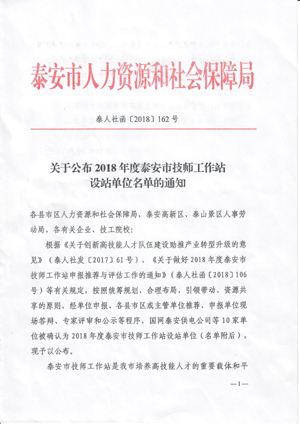 于2018年10月31日,公司技師工作站被泰安市人力資源和社會保障局表彰命名,并將獲得政策補助13萬元。今后,中房建工將以技師工作站為平臺,加大一線職工培訓(xùn)力度,不斷提高職工的技能水平,為公司創(chuàng)建精品工程輸送人才。(喬田利)