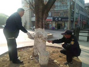 天氣漸冷,人們紛紛穿上了厚衣服,樹葉凋落,為樹木刷石灰水保溫的工作也在加緊進行。華通物業(yè)公司所管理的各小區(qū)面積大、綠化多,樹木保溫工作量大。華通物業(yè)公司小區(qū)內(nèi)工作人員積極應(yīng)對,利用空余時間對管理內(nèi)各小區(qū)的綠化進行了粉刷。保障了綠化的存活率,給業(yè)主創(chuàng)造一個舒適安逸的環(huán)境。(劉守邦)