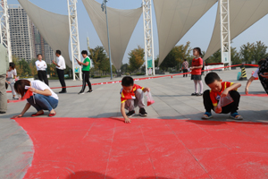 本次活動(dòng)是以傳統(tǒng)的沙畫、獨(dú)特的地畫這種藝術(shù)形式,由50名兒童親自手繪出了“中華人民共和國(guó)成立70周年”字樣、“70”圖案、新泰吉祥物,共賀新中國(guó)成立70周年。 (白文波)