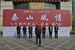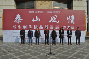為深入貫徹落實(shí)黨的十九大精神和習(xí)近平新時(shí)代社會(huì)主義文藝思想,堅(jiān)持以人民為中心的創(chuàng)作導(dǎo)向,讓文藝工作者深入生活、扎根人民,肩負(fù)起“為時(shí)代畫像、為時(shí)代立傳、為時(shí)代明德”的責(zé)任與擔(dān)當(dāng),11月6日,由泰安市委宣傳部指導(dǎo),泰安市文化和旅游局、新泰市文化和旅游局、新泰市文聯(lián)主辦,泰安市美術(shù)館、新泰市美術(shù)家協(xié)會(huì)、山東澤華置業(yè)集團(tuán)有限公司、新泰文化藝術(shù)城承辦的“翰墨頌泰山、共繪中國夢(mèng)”“泰山風(fēng)情”寫生創(chuàng)作精品展新泰站開幕儀式在新泰文化藝術(shù)城隆重開幕。泰安市文化藝術(shù)中心黨委委員、泰安市美術(shù)館館長、泰山畫院院長劉建東同志,新泰市文旅局黨組書記徐加珠同志,泰安市美術(shù)館業(yè)務(wù)副館長、泰安市油畫協(xié)會(huì)會(huì)長馮曉東同志,泰安市美術(shù)館展覽公教部主任、青年美協(xié)主席王天同志;泰安市美術(shù)館(泰山畫院)專業(yè)畫家、泰安市美協(xié)常務(wù)副主席高波同志;新泰市美術(shù)家協(xié)會(huì)副主席、秘書長梁川同志;新泰市美協(xié)副主席陳均合同志,山東澤華置業(yè)集團(tuán)有限公司董事長、總經(jīng)理王成喜同志出席了開幕儀式。開幕式由新泰市文聯(lián)社科聯(lián)主席徐勤啟同志主持。